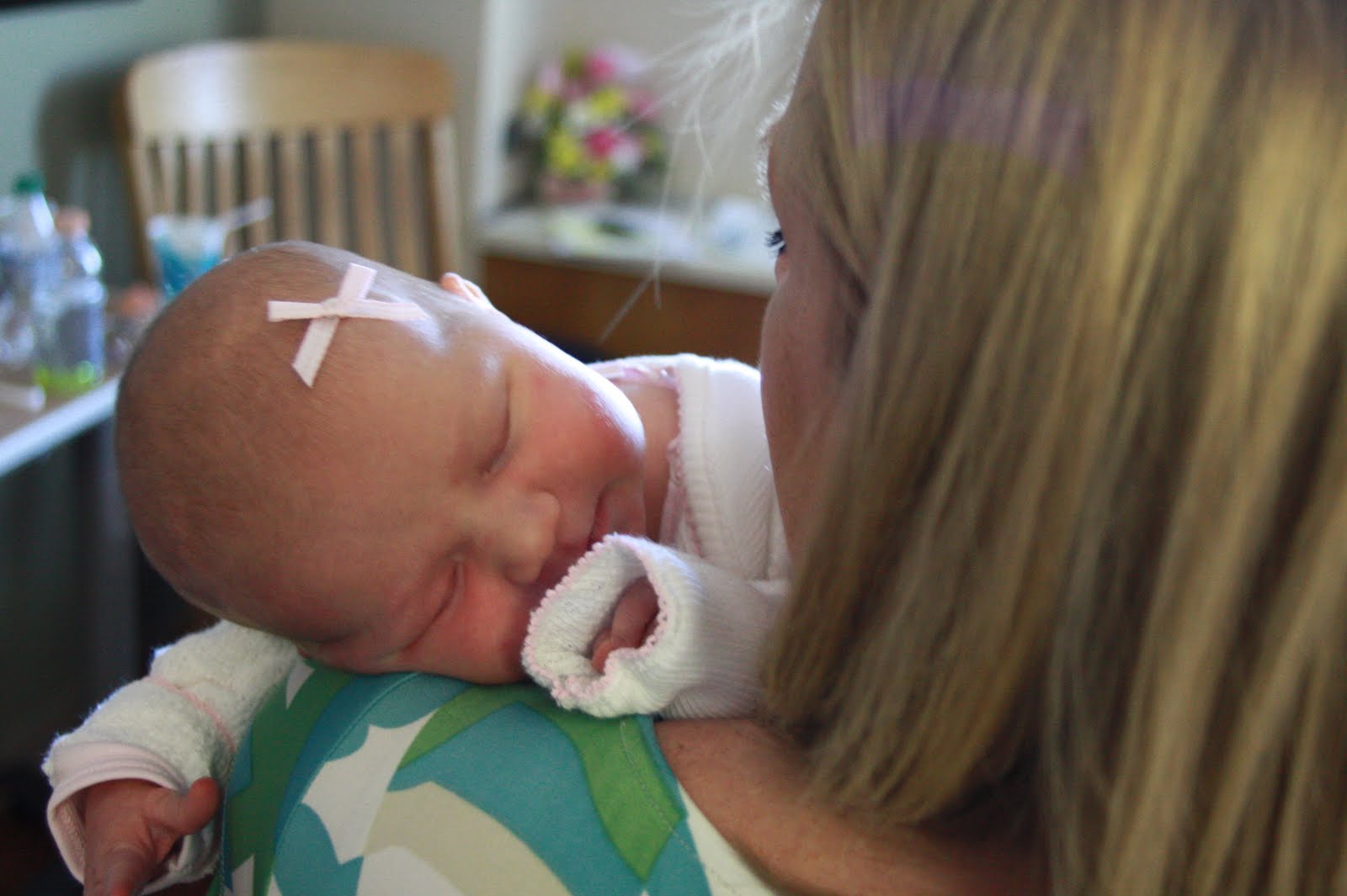 Both of our mothers were in town for the big event. Gama (my mom) was at the hospital with us and Mimi (C's mom) took Ella Kate to Little Gym and came over right away for her to meet her new little sister.